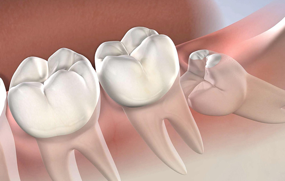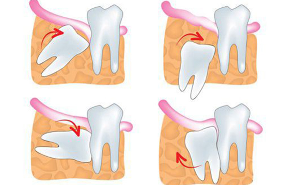 1. Răng mọc lệch hướng, đâm vào răng bên cạnh.