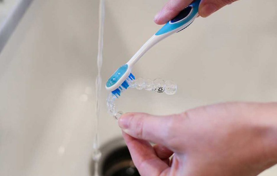 - Quan sát và hỗ trợ bé khi vệ sinh răng và khay niềng.